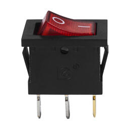 Выключатель клавишный 24V(DC) 15А (3с) ON-OFF красный с подсветкой Mini предназначен для коммутации электрических цепей напряжением 24В. Клавишные (Рокерные) выключатели применяются в качестве комплектующих изделий различного электрооборудования (в сетевых фильтрах и удлинителях, аудио-оборудовании, блоках питания, электроустановках на различных производствах, автомобилях, и многих других местах). Такой клавишный переключатель имеет два положения. Принцип действия основан на перемещении клавиши в одну из позиций. Для переключения в нужное положение требуется приложить некоторые усилия на клавишу. Монтаж осуществляется без применения винтов на плоских панелях толщиной от 0.8мм до 3мм. Подключение контактов осуществляется плоской клеммой, либо с помощью пайки.Основные характеристики:Номинальное напряжение: 24В(DC);Номинальный ток: 15A;Контактное сопротивление: не более 35 мОм;Тип переключения: ON-OFF;Количество контактных групп: 1;Количество контактов в контактной группе: 3;Фиксация положений: да;Индикатор коммутационных положений: красный;Рабочая температура: от -25℃ до +85℃;Ресурс: 10 000 циклов.