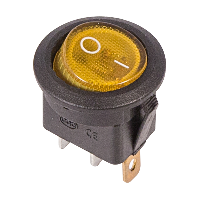 Выключатель клавишный круглый 250V 6А (3с) ON-OFF желтый с подсветкой предназначен для коммутации электрических цепей переменного тока напряжением до 250В. Клавишные (Рокерные) выключатели применяются в качестве комплектующих изделий различного электрооборудования (в сетевых фильтрах и удлинителях, аудио-оборудовании, блоках питания, электроустановках на различных производствах, автомобилях, и многих других местах). Такой клавишный переключатель имеет два положения. Принцип действия основан на перемещении клавиши в одну из позиций. Для переключения в нужное положение требуется приложить некоторые усилия на клавишу. Монтаж осуществляется без применения винтов на плоских панелях толщиной от 0.8мм до 3мм. Подключение контактов осуществляется плоской клеммой, либо с помощью пайки.Основные характеристики:Номинальное напряжение: 250В;Предельное напряжение: 1500VАС не более 1 минуты;Номинальный ток: 6A (250VAC);Контактное сопротивление: не более 35 мОм;Тип переключения: ON-OFF;Количество контактных групп: 1;Количество контактов в контактной группе: 3;Фиксация положений: да;Индикатор коммутационных положений: желтый;Рабочая температура: от -25℃ до +85℃;Ресурс: 10 000 циклов.