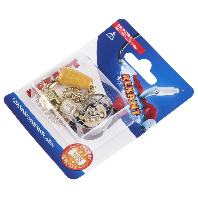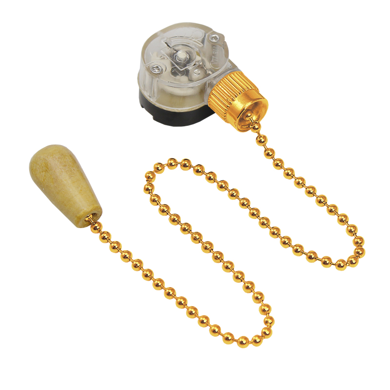 Выключатель для настенного светильника с хромированной цепочкой и деревянным наконечником. Длинна цепочки 270мм.Цвет цепочки золото. Напряжение 220В.