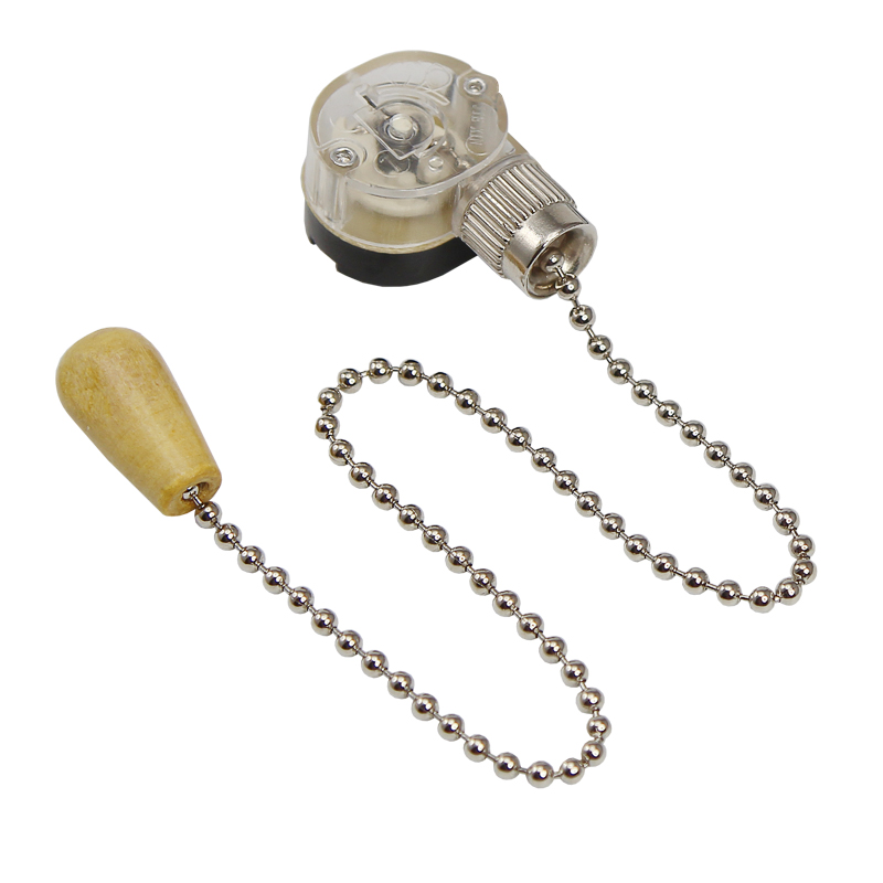 Выключатель для настенного светильника с хромированной цепочкой и деревянным наконечником. Длинна цепочки 270мм. Цвет цепочки серебро. Напряжение 220В.