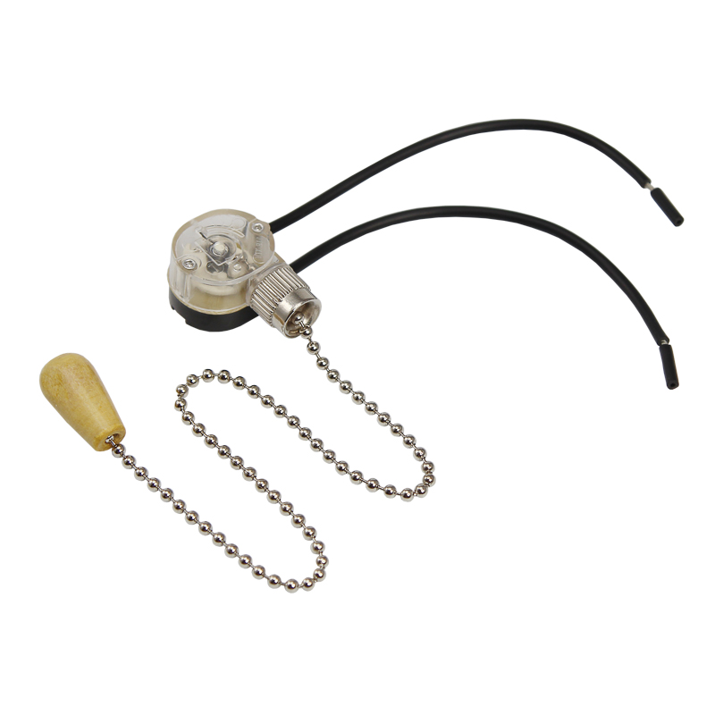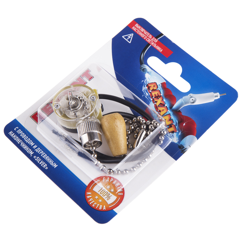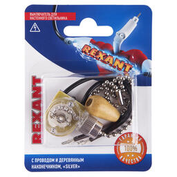 Выключатель для настенного светильника с хромированной цепочкой ,проводами и деревянным наконечником. Длинна цепочки 270мм. Цвет цепочки серебро. Напряжение 220В. Длинна провода 120мм.