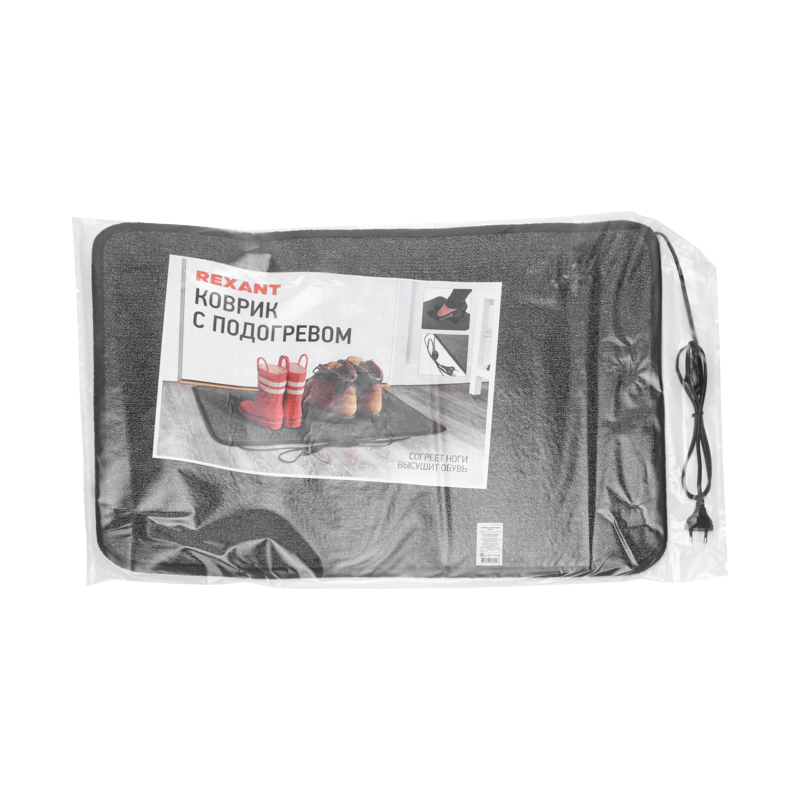 Коврик подогревается изнутри тонким нагревательным проводом. Поверхность греющего коврика выполнена из ковролина.Температурный режим обогрева подобран таким образом, чтобы создать комфортное ощущение тепла, а также обеспечить бережную сушку обуви.• Комфортная температура нагрева• Безопасность использования• Надежность и простота эксплуатации• Мобильность и компактностьХарактеристики:Номинальная мощность: 75 Вт Габаритные размеры: 500x700 ммНоминальное электрическое сопротивление: 645 Ом Температура поверхности при t° окружающей среды: 25...38 °CПределы отклонений от номинального эл. сопротивления: ±10%Номинальное напряжение: 220 В Номинальная частота: 50 Гц Длина шнура с выключателем: 1,5 мСтепень защиты от воздействия воды: IPX1Климатическое исполнение УХЛ, категория размещения: 3