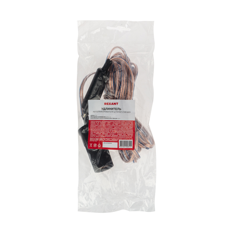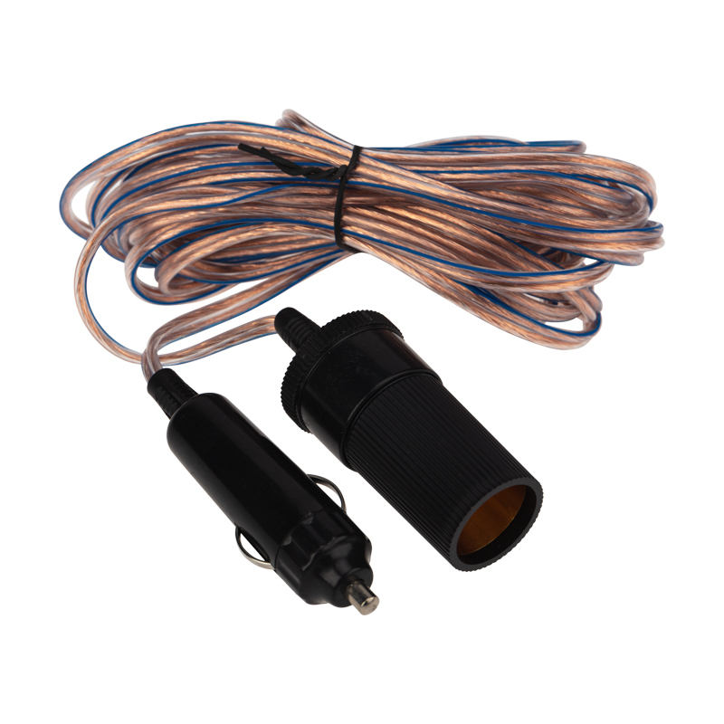 Удлинитель автоприкуривателя штекер-гнездо 5 м. REXANT предназначен для подключения электроприборов, таких как зарядные устройства, автохолодильник, телевизор, автокомпрессор, автопылесос и другие устройства, потребляющие постоянный ток (DC) напряжением 12В/24В, к бортовой сети автомобиля. Корпуса разъемов разборные и изготовлены из ударопрочного пластика.Основные характеристики:- проходное напряжение - 12В/24В;- максимально пропускаемая сила тока до 10А;- длина 5 м.Удлинитель автоприкуривателя является технически грамотным решением для подключения электрооборудования на удаленном расстоянии от автомобиля и незаменимым аксессуаром для автолюбителя.