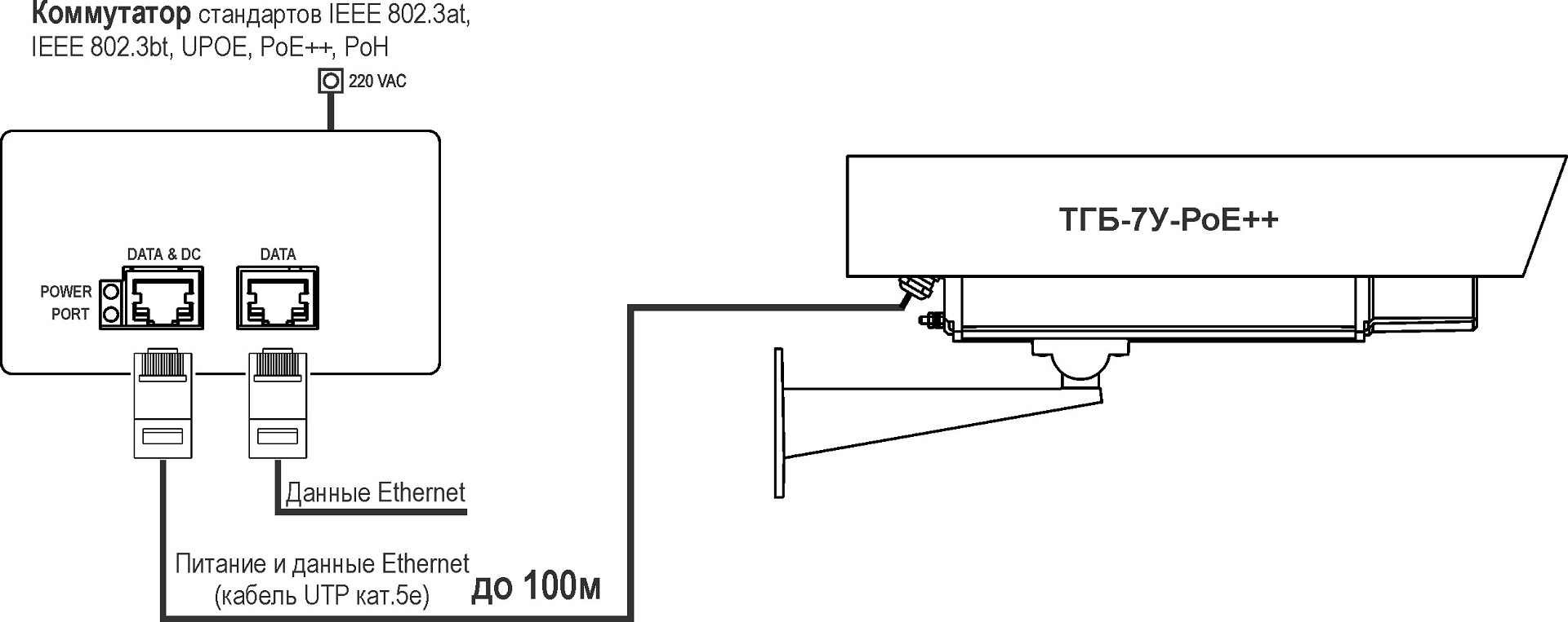 <p>Термокожух удлиненный ТГБ-7У РоЕ++ предназначен для установки сетевых (IP) видеокамер Ethernet 10/100BASE-TX и защиты их от воздействия окружающей среды (влаги и отрицательных температур). Питание термокожуха и видеокамеры осуществляется от инжектора PoE+ стандарта IEEE 802.3at по кабелю UTP категории 5e как по сигнальным, так по резервным парам (в комплект поставки не входит).</p>