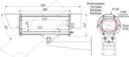 Термокожух для видеокамеры из нержавеющей кислотостойкой аустенитной стали (12Х18Н10Т). Класс защиты IP66/IP68. Рабочий объем 70х70х215 мм. Напряжение питания термокожуха 220В AC. Напряжение питания видеокамеры 12В DC или 220В AC. Мощность обогрева 31/21 Вт. Диапазон рабочих температур -60°С/-40°С…+50°C. Холодный пуск. Два гермоввода под кабель диаметром 7-12мм. В комплекте настенный кронштейн и солнцезащитный козырек.