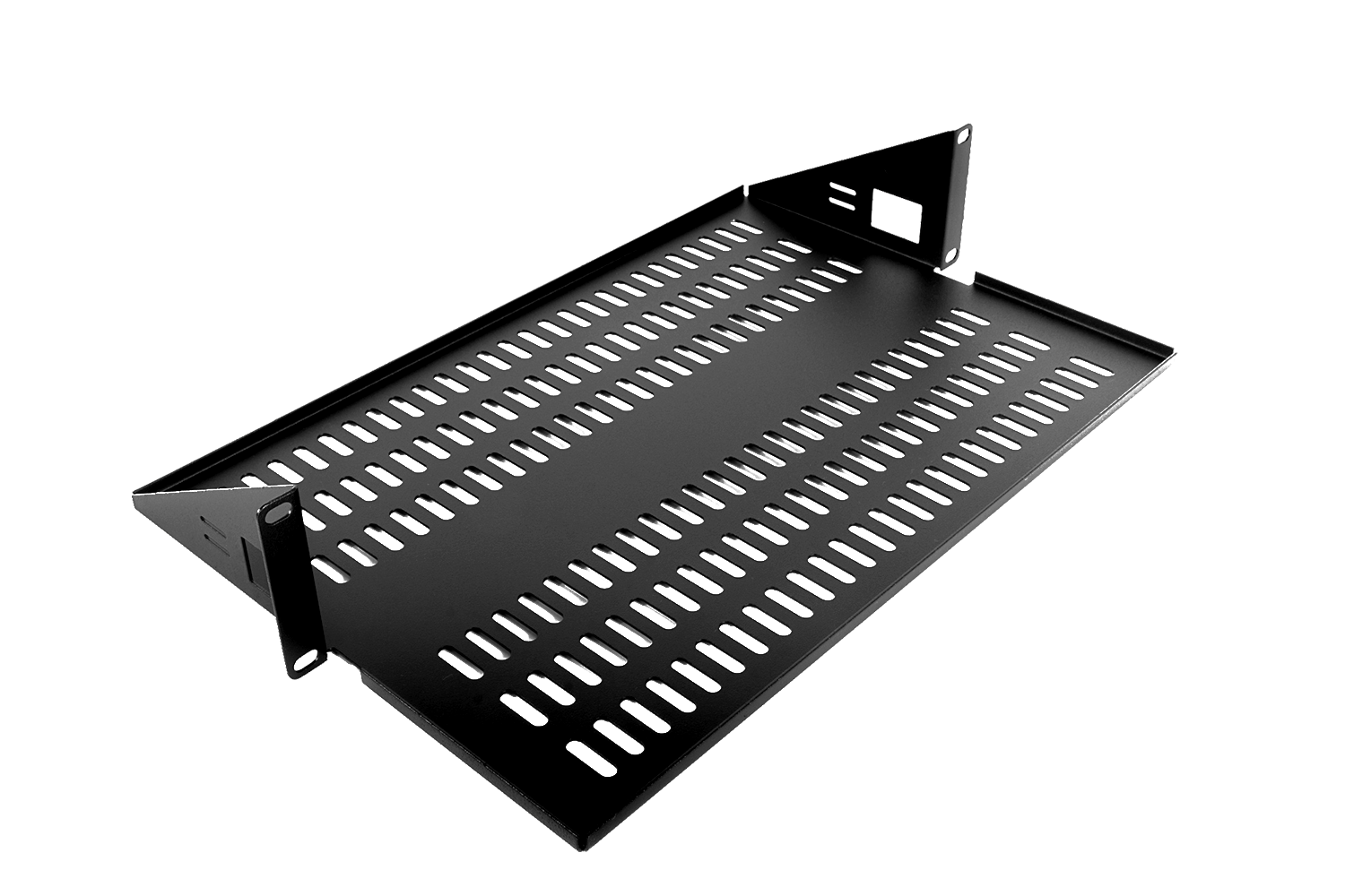 Полка для стойки перфорированная консольная 2U с центральным креплением, глубина 300 мм, цвет черный, МС-30.2-9005
