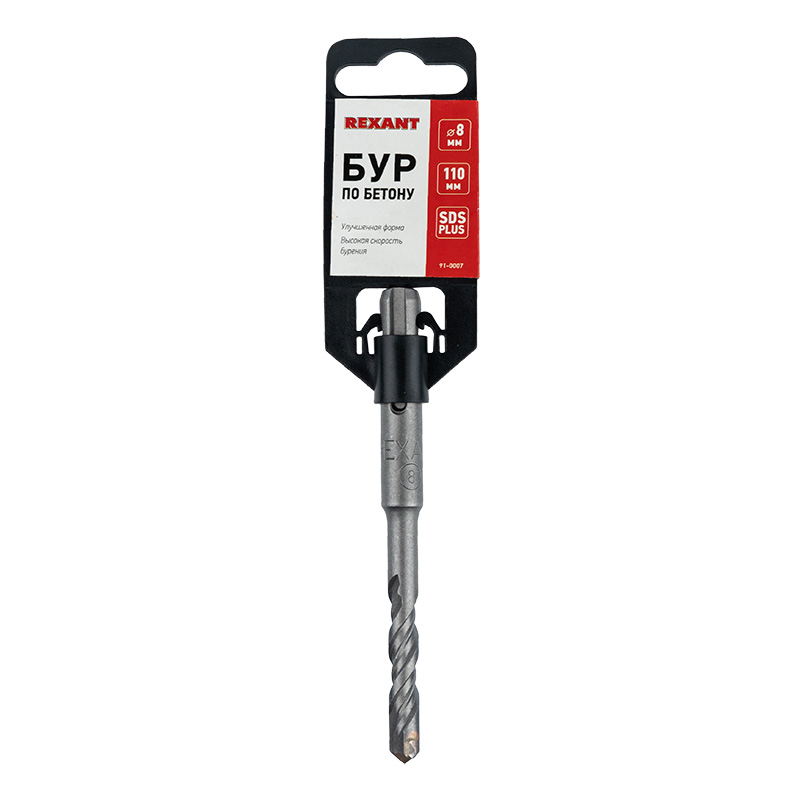 Бур по бетону 8x110 мм, SDS PLUS REXANT — режущий инструмент, предназначен для бурения твердых материалов: гранит, бетон, камень. Применяется при выполнении строительных и ремонтных работ, используется для электроинструмента.