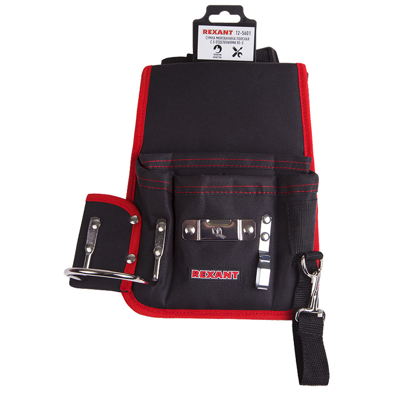 Сумка монтажника поясная с 5 отделениями для хранения инструмента, в том числе металлическая петля для подвешивания молотка. Оптимальное количество инструментов всегда по рукой. Сумка изготовлена из синтетического материала. Регулируемый ремень сумки в комплекте.Размеры: 27,5х8х25 см. Длина пояса 140 см.