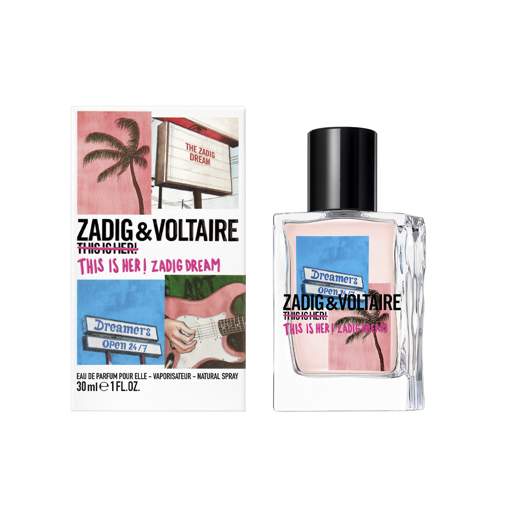 Zadig Dream открывается сочетанием фруктовых верхних нот, таких как цедра персика и грейпфрута. Этот яркий дуэт идеально воплощает в себе острые ощущения и предвкушение перед тем, как отправиться в новое приключение. Сразу после этого на первый план выходят ноты жасмина и ландыша, которые вдохнули новую жизнь в фирменный каштановый кремовый аккорд и еще больше подчеркнули ощущение свободы. Сандаловый аккорд связывает смесь вместе в базе, придавая ей особый рок-н-ролльный оттенок. Пьянящие ноты мускуса и бензоина объединяются, чтобы завершить эту мечту о побеге и приключениях.