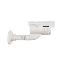ХарактеристикиНеотличим от обычной камерыМигающий красный светодиод (каждые 5 секунд)Питание: батарейки AА - 2шт.Материал: пластикМуляж камеры видеонаблюдения - это отличное решение для дома, дачи и бизнеса! Используйте муляж камеры видеонаблюдения в том случае когда нет острой необходимости в установке действующей системы.В комплекте: камера, шурупы крепления, наклейка "Ведется видеонаблюдение".