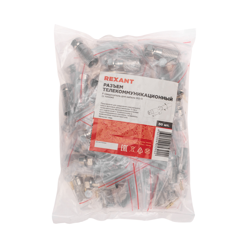 РАЗЪЕМ F-разъем RG-11 (с пином) REXANT предназначен для соединения магистрального коаксиального кабеля волновым сопротивлением 75 Ом с распределительными или оконечными устройствами (усилители, головные станции и т.п.). F-коннектор изготовлен из никелированного сплава меди (биметалл). Разъем устанавливается на кабель методом накрутки гильзы разъема на внешнюю оболочку кабеля, после соответствующей зачистки контактов, и не требует применения каких-либо специальных инструментов. Для перехода с жилы кабеля RG-11 на стандартный размер штекера используется специальная вставка (пин). F-штекер выступает в роли своеобразного экрана за счет накручивания на оплетку кабеля для выполнения роли электрического контакта. Такой высокочастотный соединитель имеет ряд положительных преимуществ: - позволяет соединять кабель без пайки контактов в удаленном месте (на крыше дома или обширных складских комплексах);- имеет высокую стойкость соединения разъем-кабель к внешним механическим воздействиям;- обладает низкой стоимостью.F-разъем RG-11 REXANT подходит для кабелей типа RG-11 (способным передавать сигналы на большие расстояния и часто используемым в построении телевизионный сетей) и других коаксиальных кабелей, имеющих наружный диаметр около 10.3 мм. Данный ТВ компонент незаменим для построения сети кабельного телевидения.