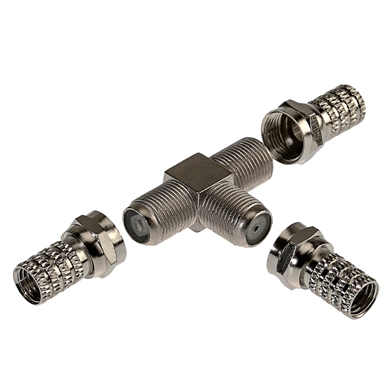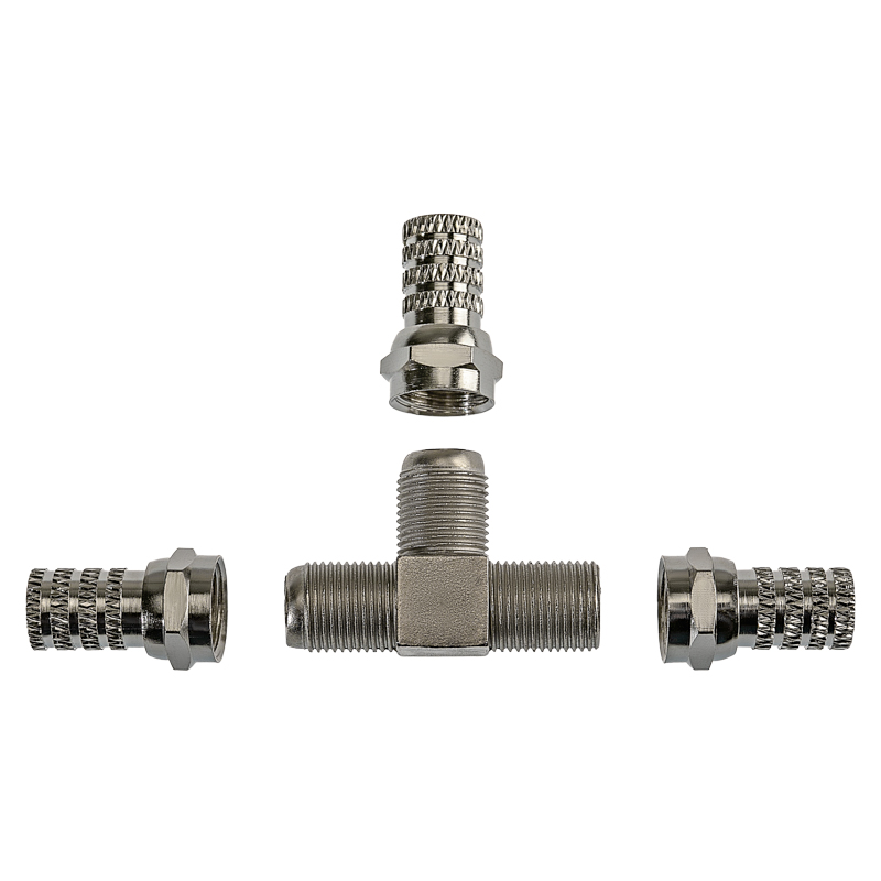 Набор антенных разъемов №5 предназначен для оконцевания кабелей. В наборе 1 переходник (3 гнезда F) и 3 F-разъема RG-6.