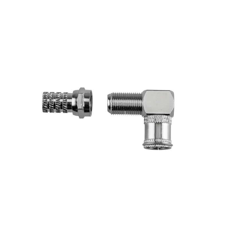 Угловой переходник также изготовлен из никелированного сплава первичной меди, что обеспечивает долговечность и минимальный уровень потери качества сигнала. Угловая форма переходника позволяет соединять провода и подключать кабель к оборудованию в ограниченном пространстве под прямым углом 90°, исключая сильные перегибы.