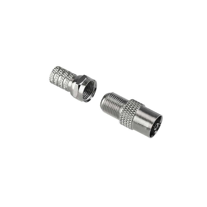 Переходник гнездо F – гнездо TV выполнен из никелированного сплава первичной меди. Позволяет соединить два кабеля, которые имеют на концах разные типы ТВ-разъемов.