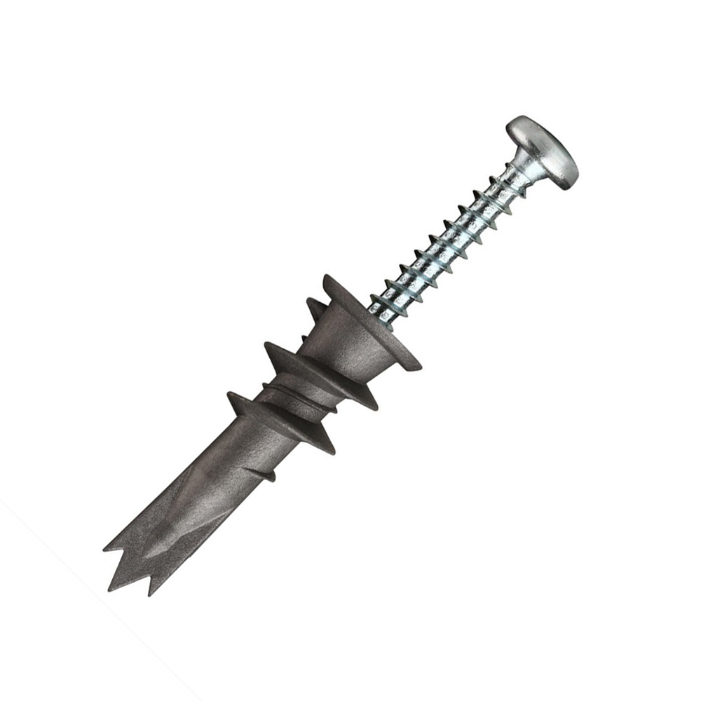 Дюбель PBAМ серого цвета благодаря увеличенной доле стекловолокна в составе нейлона может использоваться для работы со всеми видами гипсокартонных листов, включая укреплённые и реставрационные, а также с пенобетоном и газобетоном. Он служит заменой аналогичным металлическим анкерам. Самоцентрирующийся наконечник с режущими кромками позволяет устанавливать дюбель без предварительного сверления. Дюбель устанавливается заподлицо с поверхностью основания. Поставляется как с шурупом диаметром 4,5 мм и длиной 35 мм.