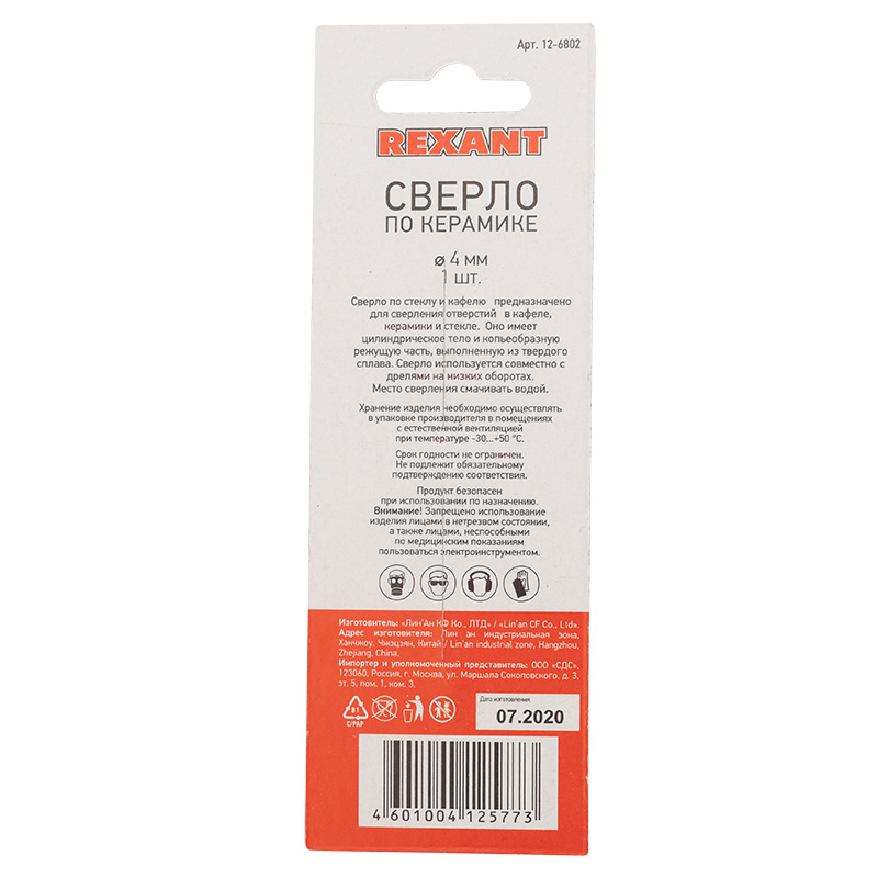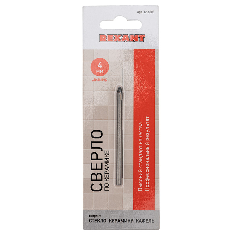 Сверло по стеклу и кафелю REXANT предназначено для обработки кафеля, стекла и керамики. Оно имеет цилиндрическое тело и копьеобразную режущую часть, выполненную из твердого сплава. Сверло используется совместно с дрелями на низких оборотах.Технические характеристики:Тип: копьевидноеТип хвостовика: цилиндрическийДиаметр: 4 мм