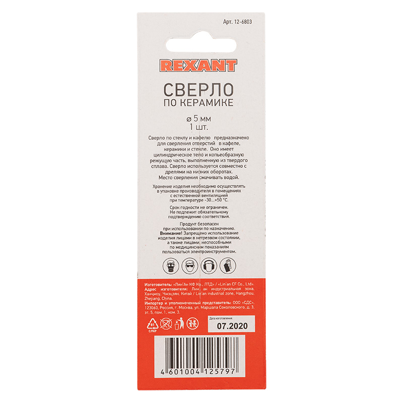 Сверло по стеклу и кафелю REXANT предназначено для обработки кафеля, стекла и керамики. Оно имеет цилиндрическое тело и копьеобразную режущую часть, выполненную из твердого сплава. Сверло используется совместно с дрелями на низких оборотах.Технические характеристики:Тип: копьевидноеТип хвостовика: цилиндрическийДиаметр: 5 мм