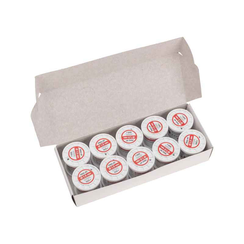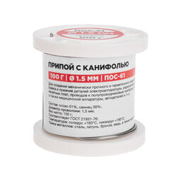 Фасовка – катушка с проволокой диаметром 1,5 мм. Температура плавления: солидус +183°C, ликвидус +190°C. Пайка металлов: сталь, латунь, бронза, медь, нержавейка.