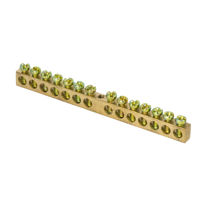Шины предназначены для присоединения нулевых проводников (шина N) и заземления (шина PE). Шины выполнены из латуни и никелированной латуни. Нулевая шина устанавливается на изоляторе.