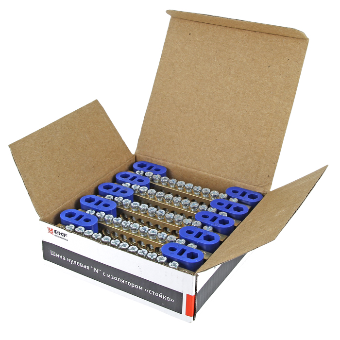 Шины предназначены для присоединения нулевых проводников (шина N) и заземления (шина PE). Шины выполнены из латуни и никелированной латуни. Нулевая шина устанавливается на изоляторе.