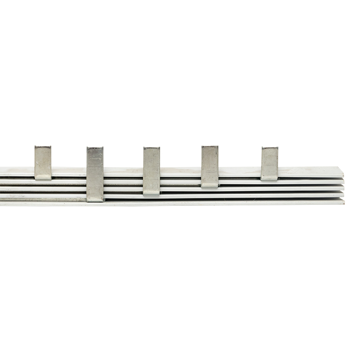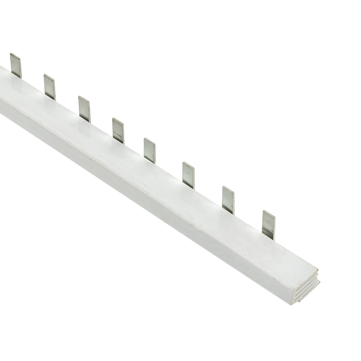 Шины соединительные производятся в двух исполнениях: FORK («вилка») и PIN («гребенка») на номинальные токи 63 и 100 А, на одно-, двух-,трех- и четырехфазную нагрузку. Шины соединительные представляют собой пластины, выполненные из меди (шины на 100 А – из луженой меди), закрепленные в корпусе из диэлектрического материала, не поддерживающего горение, и выпускаются стандартной длиной 1 метр.