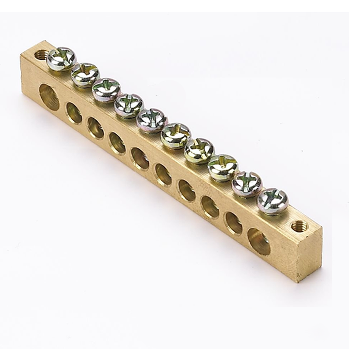 Шины предназначены для присоединения нулевых проводников (шина N) и заземления (шина PE). Шины выполнены из латуни и никелированной латуни. Нулевая шина устанавливается на изоляторе.