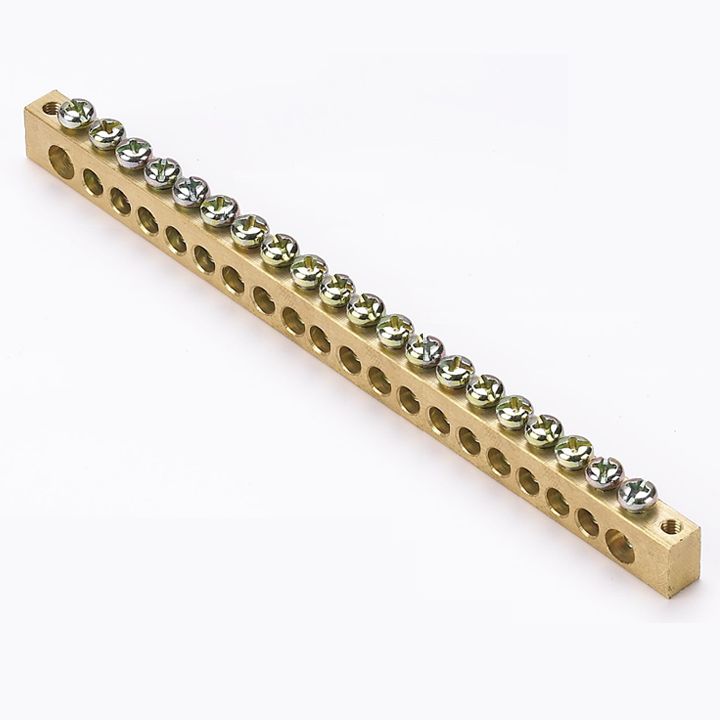 Шины предназначены для присоединения нулевых проводников (шина N) и заземления (шина PE). Шины выполнены из латуни и никелированной латуни. Нулевая шина устанавливается на изоляторе.