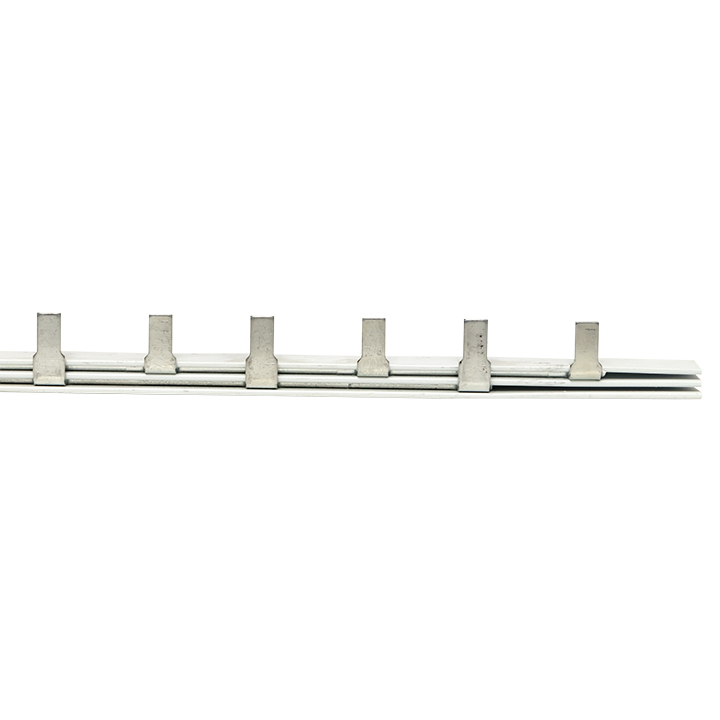 Шины соединительные производятся в двух исполнениях: FORK («вилка») и PIN («гребенка») на номинальные токи 63 и 100 А, на одно-, двух-,трех- и четырехфазную нагрузку. Шины соединительные представляют собой пластины, выполненные из меди (шины на 100 А – из луженой меди), закрепленные в корпусе из диэлектрического материала, не поддерживающего горение, и выпускаются стандартной длиной 1 метр.