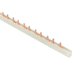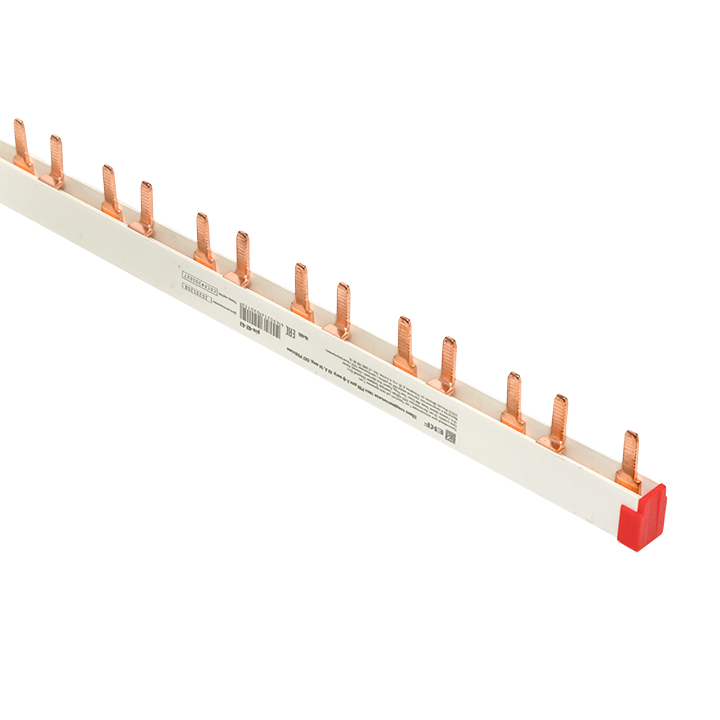 Шины соединительные производятся в двух исполнениях: FORK («вилка») и PIN («гребенка») на номинальные токи 63 и 100 А, на одно-, двух-,трех- и четырехфазную нагрузку. Шины соединительные представляют собой пластины, выполненные из меди (шины на 100 А – из луженой меди), закрепленные в корпусе из диэлектрического материала, не поддерживающего горение, и выпускаются стандартной длиной 1 метр.