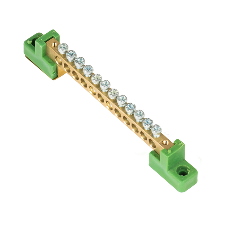 Шины предназначены для присоединения нулевых проводников (шина N) и заземления (шина PE). Шины выполнены из латуни и никелированной латуни. Нулевая шина устанавливается на изоляторе.