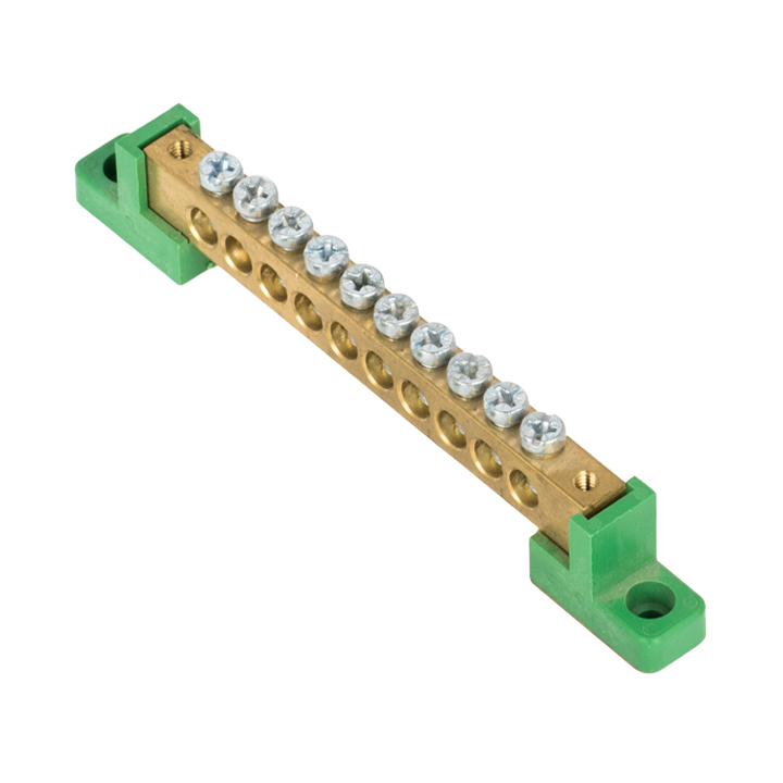 Шины предназначены для присоединения нулевых проводников (шина N) и заземления (шина PE). Шины выполнены из латуни и никелированной латуни. Нулевая шина устанавливается на изоляторе.