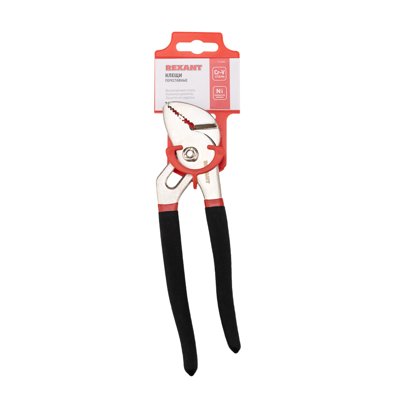 Клещи переставные REXANT 200 мм — инструмент, используемый для захвата различных деталей и элементов во время проведения столярно-слесарных, сборно-разборных и других работ.Хром-ванадиевый сплав (Chrome Vanadium) CrV, из которого изготовлен инструмент, обладает такими свойствами, как прочность, жесткость и устойчивость к износу. Во время прокаливания он менее подвержен деформациям и потере первоначальной формы, чем другие типы инструментальной стали.Технические характеристики: Материал рабочей части: высокоуглеродистая сталь CrV Твердость на поверхности инструмента: ≥48 HRCТвердость на поверхности губок: 58-62 HRCПокрытие: никельУсиленные рукояткиСпособ обработки: закалкаДлина инструмента: 200 ммМатериал рукояток: ПВХ