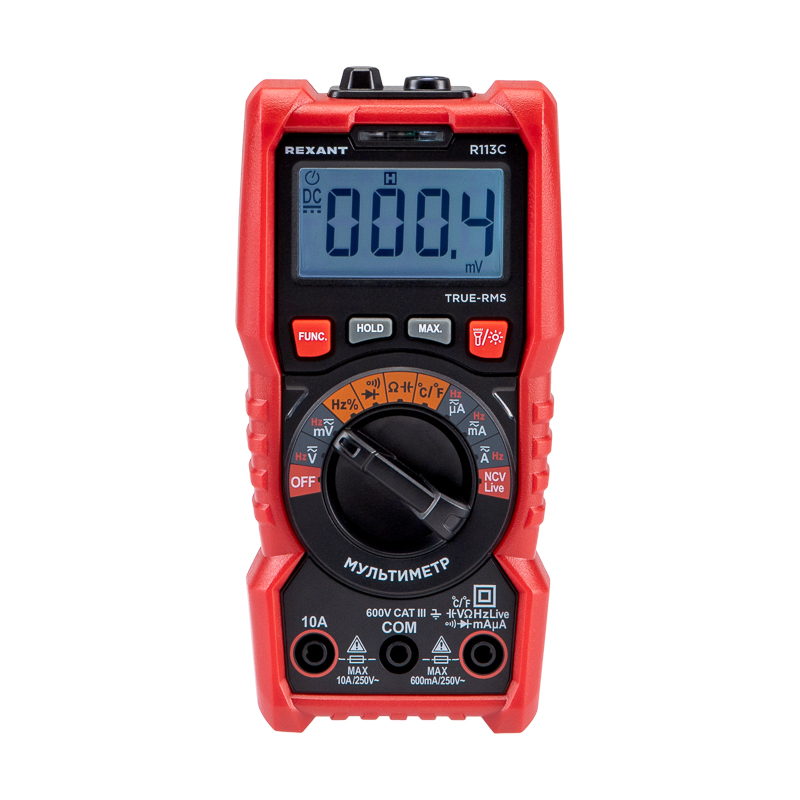 Портативный цифровой мультиметр R113C REXANT сочетает высокую точность, удобство использования и широкий спектр функций.