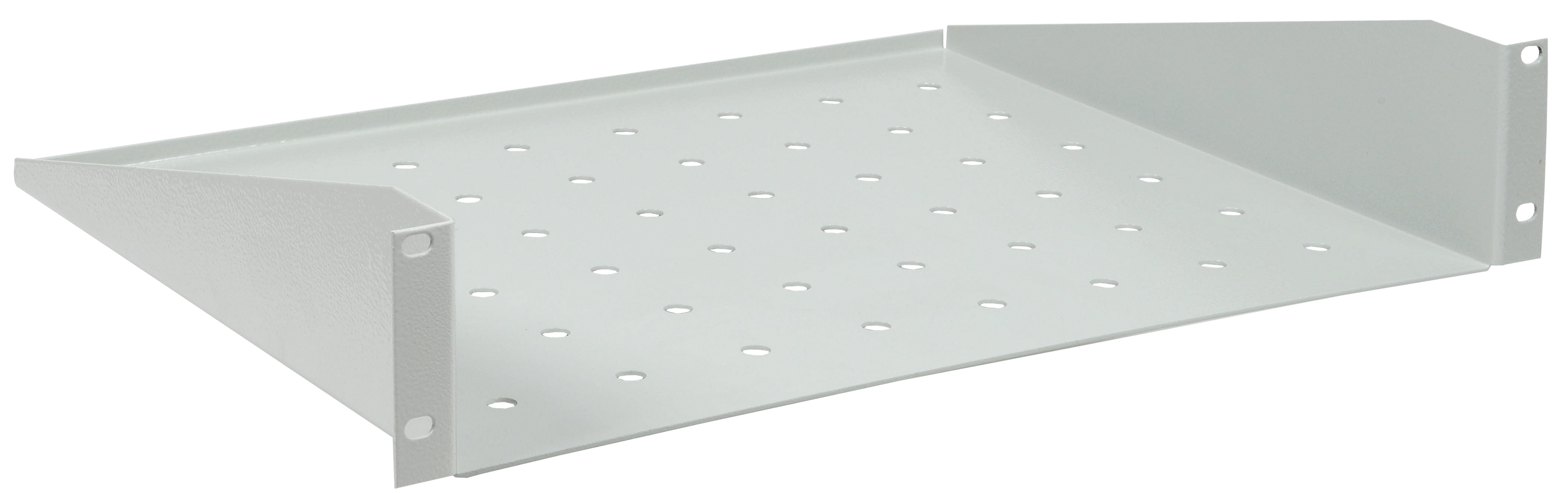Консольные полки рассчитаны на размещение небольшого по габаритам и общей массе оборудования. Конструкция данных полок рассчитана на крепление полки только на одной паре монтажных профилей, спереди или сзади, и может быть как с перфорацией для лучшего охлаждения и отведения горячего воздуха, так и без нее.