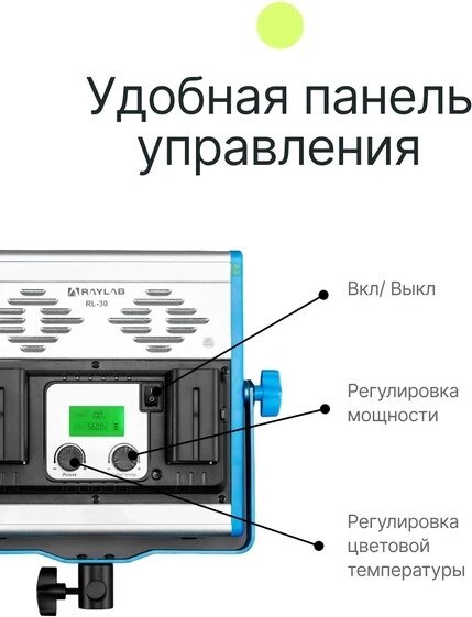 • Управление осветителем дисплей, кнопки, мобильное приложение