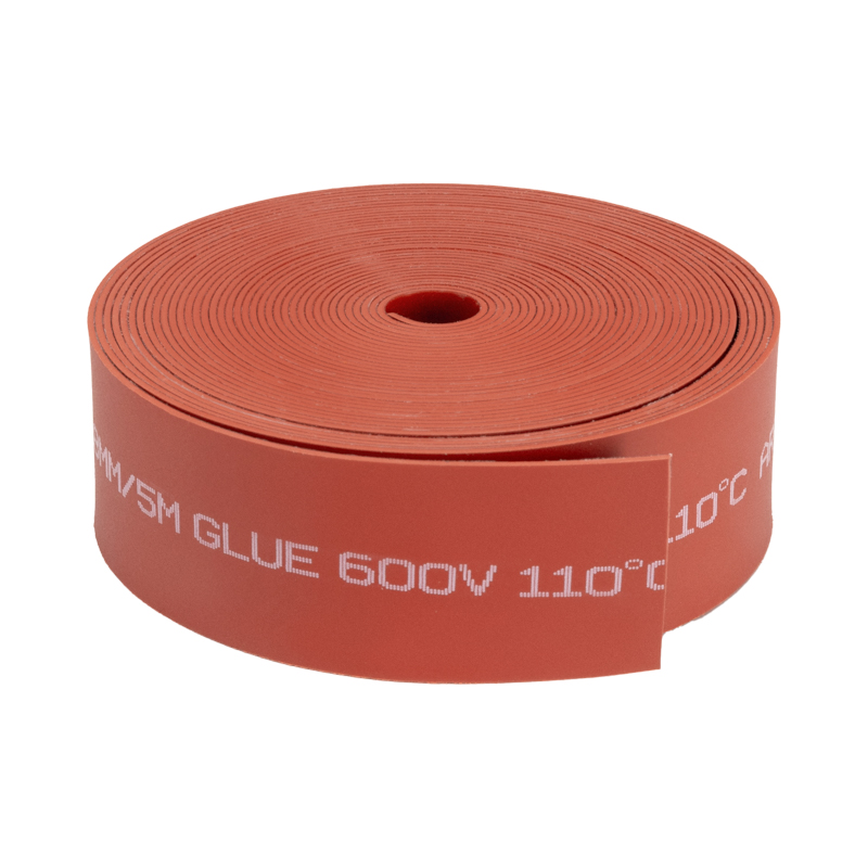 Термоусаживаемая лента с клеевым слоем REXANT ТЛ-0,8 25 мм красная 5 метров. Термоусаживаемые ленты REXANT применяются для связывания пучков проводов и кабелей, изолирования соединений и устранения повреждений изоляции проводов и кабелей. А также для механической защиты элементов конструкций, подверженных механическим повреждениям, коррозии, стиранию.Термоусаживаемые ленты рекомендованы для применения в местах, где требуется выполнение прочного и герметического соединения конструктивных элементов. Благодаря наличию термоплавкого клеевого подслоя обеспечивают надежное соединение с изолируемыми объектами. Хорошая адгезия термоплавкого клея к металлу, дереву, керамике и пластмассам дает возможность использования лент в соединениях вентиляционных и проходных труб, силовых проводов и кабелей связи. Соединения, выполненные с помощью термоусаживаемых лент REXANT устойчивы к механическим повреждениям и коррозии.Применение: Монтаж осуществляется внахлест в 2\3 ленты и одновременным прогревом при помощи высокотемпературных фенов или газовых горелок. Технические характеристики: 1. Материал: полиолефин2. Относительное удлинение при разрыве: не менее 400%3. Температура усадки: от +120 ℃4. Температурный диапазон в режиме эксплуатации: -45...+125 ℃5. Прочность на растяжение: не менее 15 МПа6. Электрическая прочность: не менее 15 кВ/мм 7. Рабочее напряжение: до 10 кВ8. Удельное электрическое сопротивление: 1014 Ом/см 9. Не поддерживает горение10. Коэффициент усадки: 1.4:111. Толщина ленты после усадки: 0,8 мм