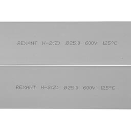 Термоусаживаемая трубка REXANT — один из самых популярных и надежных термоусаживаемых материалов.Предназначена для восстановления поврежденной и создания новой изоляции, герметизации поверхностей и электрических соединений кабелей и проводов, бандажирования и маркировки проводов, для создания антикоррозийных защитных и декоративных покрытий.Технические характеристики:1. Горючесть: не поддерживает горение2. Относительное удлинение при разрыве: не менее 200 %3. Температура усадки:110 ℃4. Температурный диапазон в режиме эксплуатации: -40...+125 ℃5. Прочность на растяжение: не менее 10.4 МПа6. Электрическая прочность: не менее 19.7 кВ/мм7. Рабочее напряжение: 600 В8. Удельное электрическое сопротивление: 10^14 Ом/см9. Диаметр трубки до усадки: 25,0 мм10. Диаметр трубки после усадки: 12,5 мм11. Толщина трубки после усадки: 0,9 мм12. Состав: ПолиолефинОтличается высокой гибкостью; материал(полиолефин), из которого изготовлена трубка, экологически безопасен. Уникальным свойством термоусаживаемых трубок является их способность менять свой диаметр, сжиматься в результате нагрева и принимать форму предмета или материала, на который совершается усадка, для этого достаточно нагреть трубку до необходимой температуры, а потом дать остыть. Трубка имеет свойство подавления горения, то есть она неспособна поддерживать горение, в отсутствии открытого огня затухает самостоятельно и неспособна воспламеняться.Рекомендуется проведение работ по усадке трубок с помощью специальных электромонтажных фенов и газовых горелок REXANT.