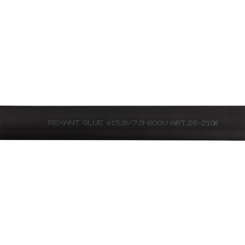 Термоусаживаемая трубка с клеевым слоем REXANT — один из самых популярных и надежных термоусаживаемых материалов.Предназначена для восстановления поврежденной и создания новой изоляции при соединении кабелей и проводов, полной герметизации поверхностей электрических соединений кабелей и проводов, для создания антикоррозийных защитных и декоративных покрытий.Технические характеристики:1. Относительное удлинение при разрыве: не менее 200 %2. Температура усадки: +85 °С3. Температурный диапазон в режиме эксплуатации: -45...+125 °С4. Прочность на растяжение: не менее 10.4 МПа5. Электрическая прочность: не менее 19.7 кВ/мм6. Рабочее напряжение: 600 В7. Удельное электрическое сопротивление: 10^14 Ом/см8. Коэффициент усадки: 2:19. Не поддерживает горение10. Диаметр трубки до усадки: 15,9 мм11. Диаметр трубки после усадки: 7,95 мм12. Клеевой слой: по всей длине на внутренней сторонеНа внутреннюю поверхность такой термоусаживаемой трубки нанесен клеевой слой. При нагреве клей расплавляется заполняя пустоты, обеспечивая герметичность и склейку места стыка с объектом воздействия. Уникальным свойством термоусаживаемых трубок является их способность менять свой диаметр, сжиматься в результате нагрева и принимать форму предмета или материала, на который совершается усадка, для этого достаточно нагреть трубку до необходимой температуры, а потом дать остыть. Трубка имеет свойство подавления горения, то есть она неспособна поддерживать горение, в отсутствии открытого огня затухает самостоятельно и неспособна воспламеняться.Рекомендуется проведение работ по усадке трубок с помощью специальных электромонтажных фенов и газовых горелок REXANT.