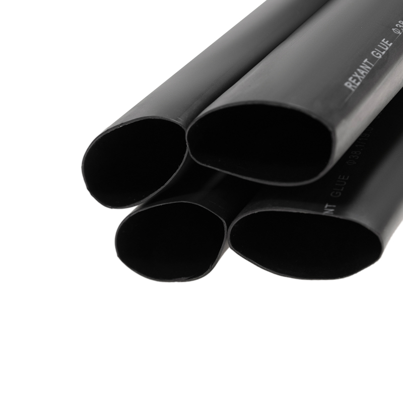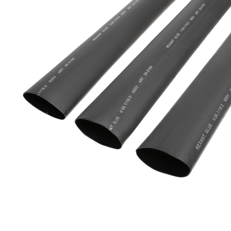 Термоусаживаемая трубка с клеевым слоем REXANT — один из самых популярных и надежных термоусаживаемых материалов.Предназначена для восстановления поврежденной и создания новой изоляции при соединении кабелей и проводов, полной герметизации поверхностей электрических соединений кабелей и проводов, для создания антикоррозийных защитных и декоративных покрытий.Технические характеристики:1. Относительное удлинение при разрыве: не менее 200 %2. Температура усадки: +85 °С3. Температурный диапазон в режиме эксплуатации: -45...+125 °С4. Прочность на растяжение: не менее 10.4 МПа5. Электрическая прочность: не менее 19.7 кВ/мм6. Рабочее напряжение: 600 В7. Удельное электрическое сопротивление: 10^14 Ом/см8. Коэффициент усадки: 2:19. Не поддерживает горение10. Диаметр трубки до усадки: 38,1 мм11. Диаметр трубки после усадки: 19,5 мм12. Клеевой слой: по всей длине на внутренней сторонеНа внутреннюю поверхность такой термоусаживаемой трубки нанесен клеевой слой. При нагреве клей расплавляется заполняя пустоты, обеспечивая герметичность и склейку места стыка с объектом воздействия. Уникальным свойством термоусаживаемых трубок является их способность менять свой диаметр, сжиматься в результате нагрева и принимать форму предмета или материала, на который совершается усадка, для этого достаточно нагреть трубку до необходимой температуры, а потом дать остыть. Трубка имеет свойство подавления горения, то есть она неспособна поддерживать горение, в отсутствии открытого огня затухает самостоятельно и неспособна воспламеняться.Рекомендуется проведение работ по усадке трубок с помощью специальных электромонтажных фенов и газовых горелок REXANT.