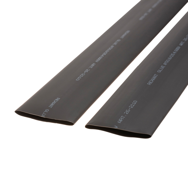 Термоусаживаемая трубка с клеевым слоем REXANT — один из самых популярных и надежных термоусаживаемых материалов.Предназначена для восстановления поврежденной и создания новой изоляции при соединении кабелей и проводов, полной герметизации поверхностей электрических соединений кабелей и проводов, для создания антикоррозийных защитных и декоративных покрытий.Технические характеристики:1. Относительное удлинение при разрыве: не менее 200 %2. Температура усадки: +85 °С3. Температурный диапазон в режиме эксплуатации: -45...+125 °С4. Прочность на растяжение: не менее 10.4 МПа5. Электрическая прочность: не менее 19.7 кВ/мм6. Рабочее напряжение: 600 В7. Удельное электрическое сопротивление: 10^14 Ом/см8. Коэффициент усадки: 2:19. Не поддерживает горение10. Диаметр трубки до усадки: 50,8 мм11. Диаметр трубки после усадки: 25,4 мм12. Клеевой слой: по всей длине на внутренней сторонеНа внутреннюю поверхность такой термоусаживаемой трубки нанесен клеевой слой. При нагреве клей расплавляется заполняя пустоты, обеспечивая герметичность и склейку места стыка с объектом воздействия. Уникальным свойством термоусаживаемых трубок является их способность менять свой диаметр, сжиматься в результате нагрева и принимать форму предмета или материала, на который совершается усадка, для этого достаточно нагреть трубку до необходимой температуры, а потом дать остыть. Трубка имеет свойство подавления горения, то есть она неспособна поддерживать горение, в отсутствии открытого огня затухает самостоятельно и неспособна воспламеняться.Рекомендуется проведение работ по усадке трубок с помощью специальных электромонтажных фенов и газовых горелок REXANT.