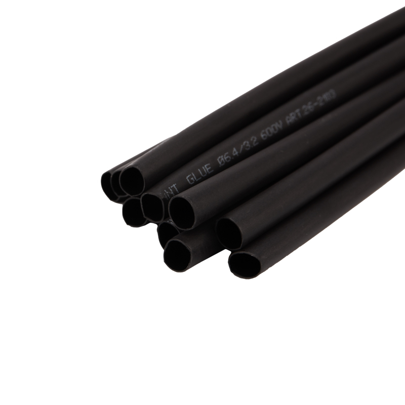 Термоусаживаемая трубка с клеевым слоем REXANT — один из самых популярных и надежных термоусаживаемых материалов.Предназначена для восстановления поврежденной и создания новой изоляции при соединении кабелей и проводов, полной герметизации поверхностей электрических соединений кабелей и проводов, для создания антикоррозийных защитных и декоративных покрытий.Технические характеристики:1. Относительное удлинение при разрыве: не менее 200 %2. Температура усадки: +85 °С3. Температурный диапазон в режиме эксплуатации: -45...+125 °С4. Прочность на растяжение: не менее 10.4 МПа5. Электрическая прочность: не менее 19.7 кВ/мм6. Рабочее напряжение: 600 В7. Удельное электрическое сопротивление: 10^14 Ом/см8. Коэффициент усадки: 2:19. Не поддерживает горение10. Диаметр трубки до усадки: 6,4 мм11. Диаметр трубки после усадки: 3,2 мм12. Клеевой слой: по всей длине на внутренней сторонеНа внутреннюю поверхность такой термоусаживаемой трубки нанесен клеевой слой. При нагреве клей расплавляется заполняя пустоты, обеспечивая герметичность и склейку места стыка с объектом воздействия. Уникальным свойством термоусаживаемых трубок является их способность менять свой диаметр, сжиматься в результате нагрева и принимать форму предмета или материала, на который совершается усадка, для этого достаточно нагреть трубку до необходимой температуры, а потом дать остыть. Трубка имеет свойство подавления горения, то есть она неспособна поддерживать горение, в отсутствии открытого огня затухает самостоятельно и неспособна воспламеняться.Рекомендуется проведение работ по усадке трубок с помощью специальных электромонтажных фенов и газовых горелок REXANT.
