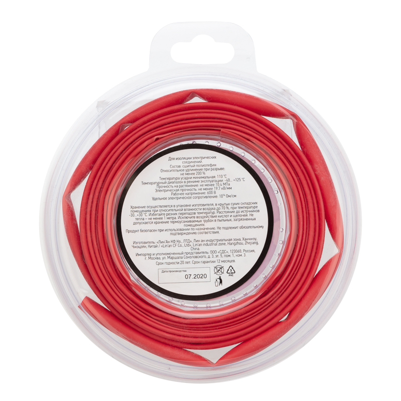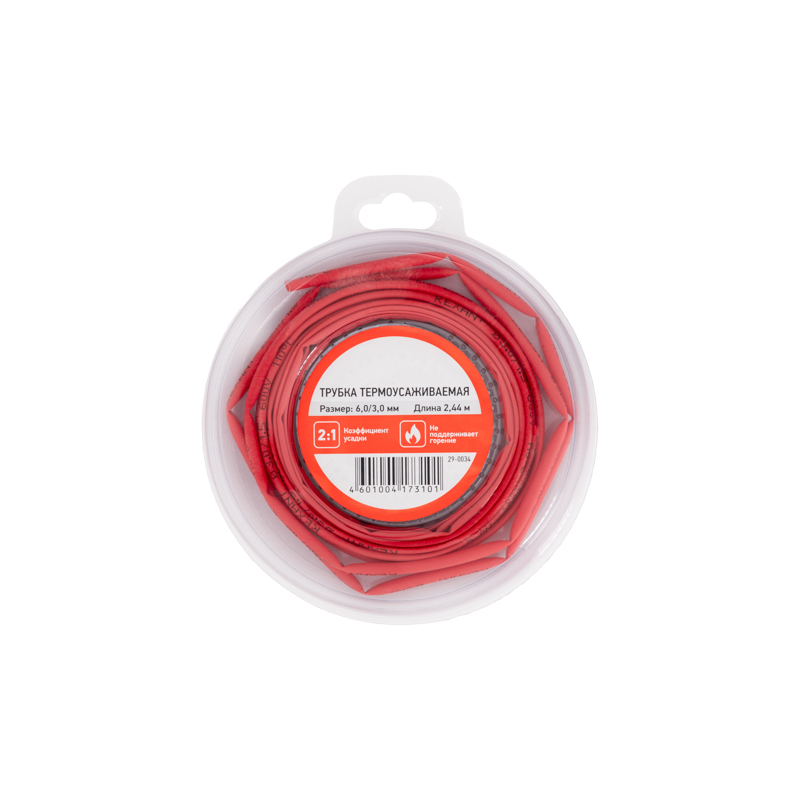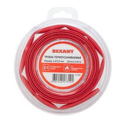 Термоусаживаемая трубка REXANT — один из самых популярных и надежных термоусаживаемых материалов.Предназначена для восстановления поврежденной и создания новой изоляции, герметизации поверхностей и электрических соединений кабелей и проводов, бандажирования и маркировки проводов, для создания антикоррозийных защитных и декоративных покрытий.Технические характеристики:1. Горючесть: не поддерживает горение2. Относительное удлинение при разрыве: не менее 200 %3. Температура усадки:110 ℃4. Температурный диапазон в режиме эксплуатации: -40...+125 ℃5. Прочность на растяжение: не менее 10.4 МПа6. Электрическая прочность: не менее 19.7 кВ/мм7. Рабочее напряжение: 600 В8. Удельное электрическое сопротивление: 10^14 Ом/см9. Диаметр трубки до усадки: 6,0 мм10. Диаметр трубки после усадки: 3,0 мм11. Толщина трубки после усадки: 0,55 мм12. Состав: ПолиолефинОтличается высокой гибкостью; материал(полиолефин), из которого изготовлена трубка, экологически безопасен. Уникальным свойством термоусаживаемых трубок является их способность менять свой диаметр, сжиматься в результате нагрева и принимать форму предмета или материала, на который совершается усадка, для этого достаточно нагреть трубку до необходимой температуры, а потом дать остыть. Трубка имеет свойство подавления горения, то есть она неспособна поддерживать горение, в отсутствии открытого огня затухает самостоятельно и неспособна воспламеняться.Рекомендуется проведение работ по усадке трубок с помощью специальных электромонтажных фенов и газовых горелок REXANT.