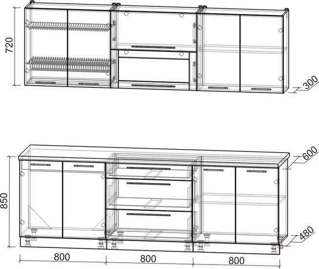 - Высота нижних шкафов 85 см