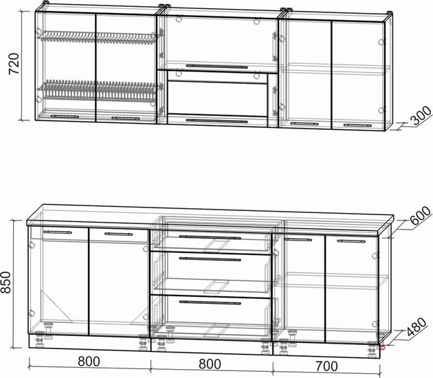 - Высота нижних шкафов 85 см
