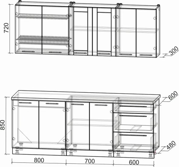 • Высота нижних шкафов 85 см