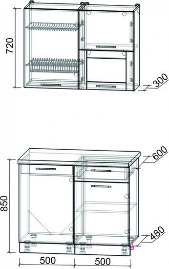 • Ширина кухни 60 см