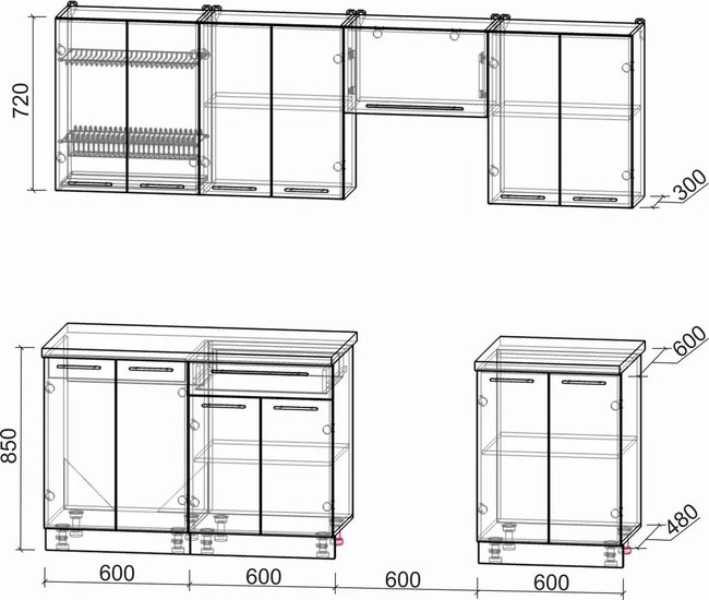 • Ширина кухни 60 см