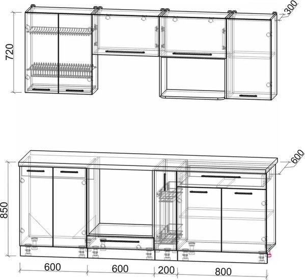 • Высота нижних шкафов 85 см