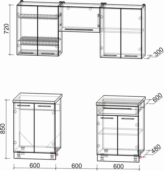 • Ширина кухни 60 см