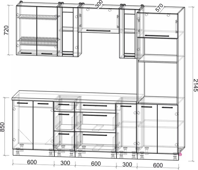 - Высота нижних шкафов 85 см